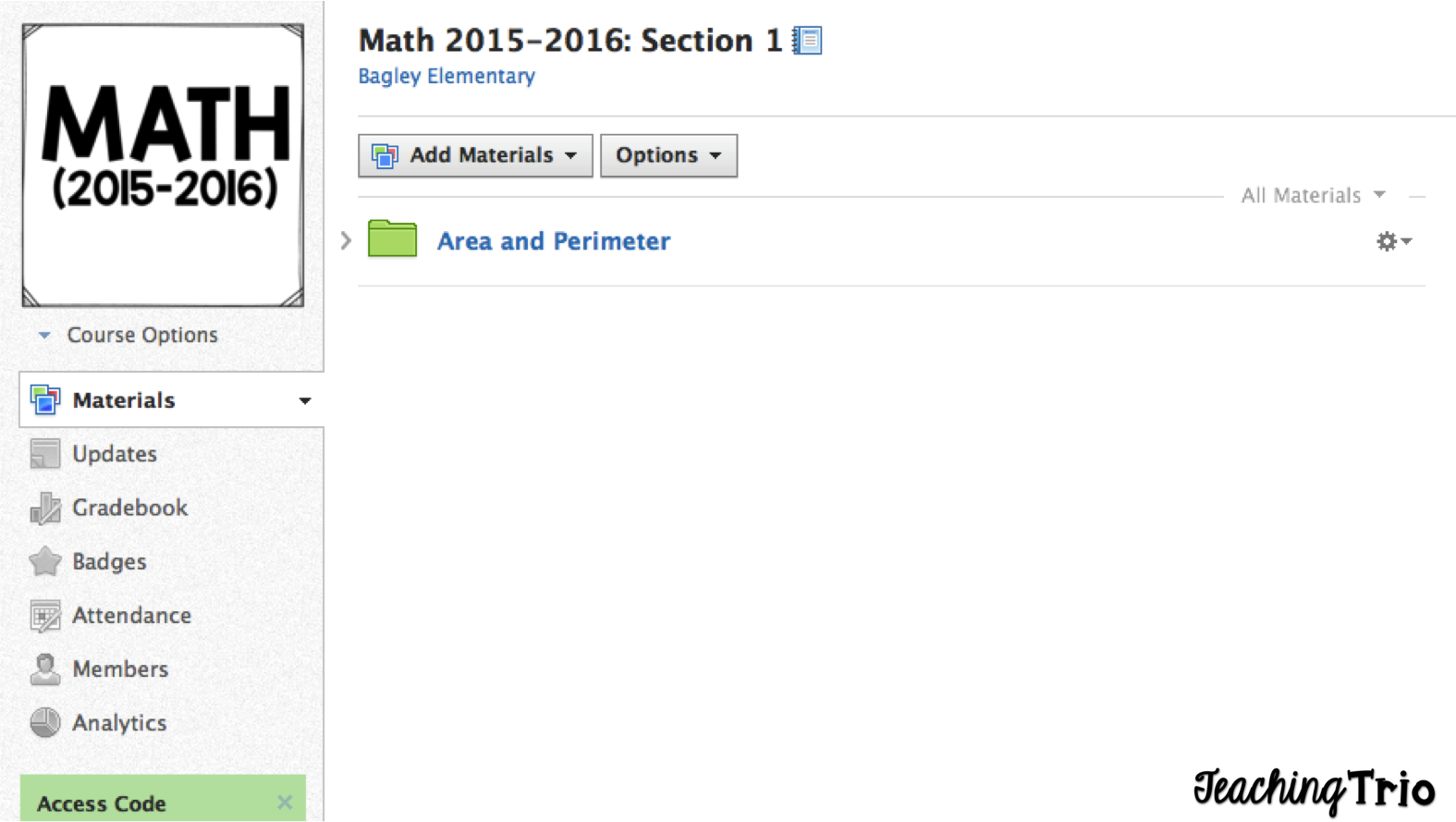 You can see that on the bottom left corner there is a green box (halfway cut off). This is the access code your students will need to log-in to your class. When my students logged in for the first time on Monday, I projected this screen so they could simply type in the code (not case sensitive).