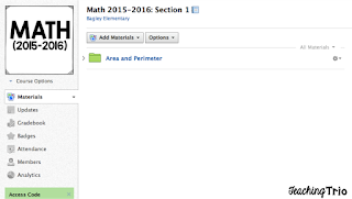 An assignment might include a video, pictures, audio, just text etc. It can also include an actual assignment if you have apps that would allow your students to manipulate handouts. Under test/quiz you can select multiple choice, true/false, fill in the blank, etc. There are so many options! I think that is what I like the most about this website, they left it very open for teachers and I can make it work for my students. Here is a look at my math unit.