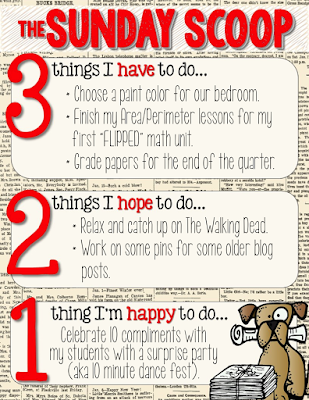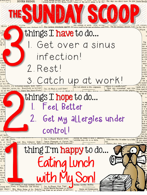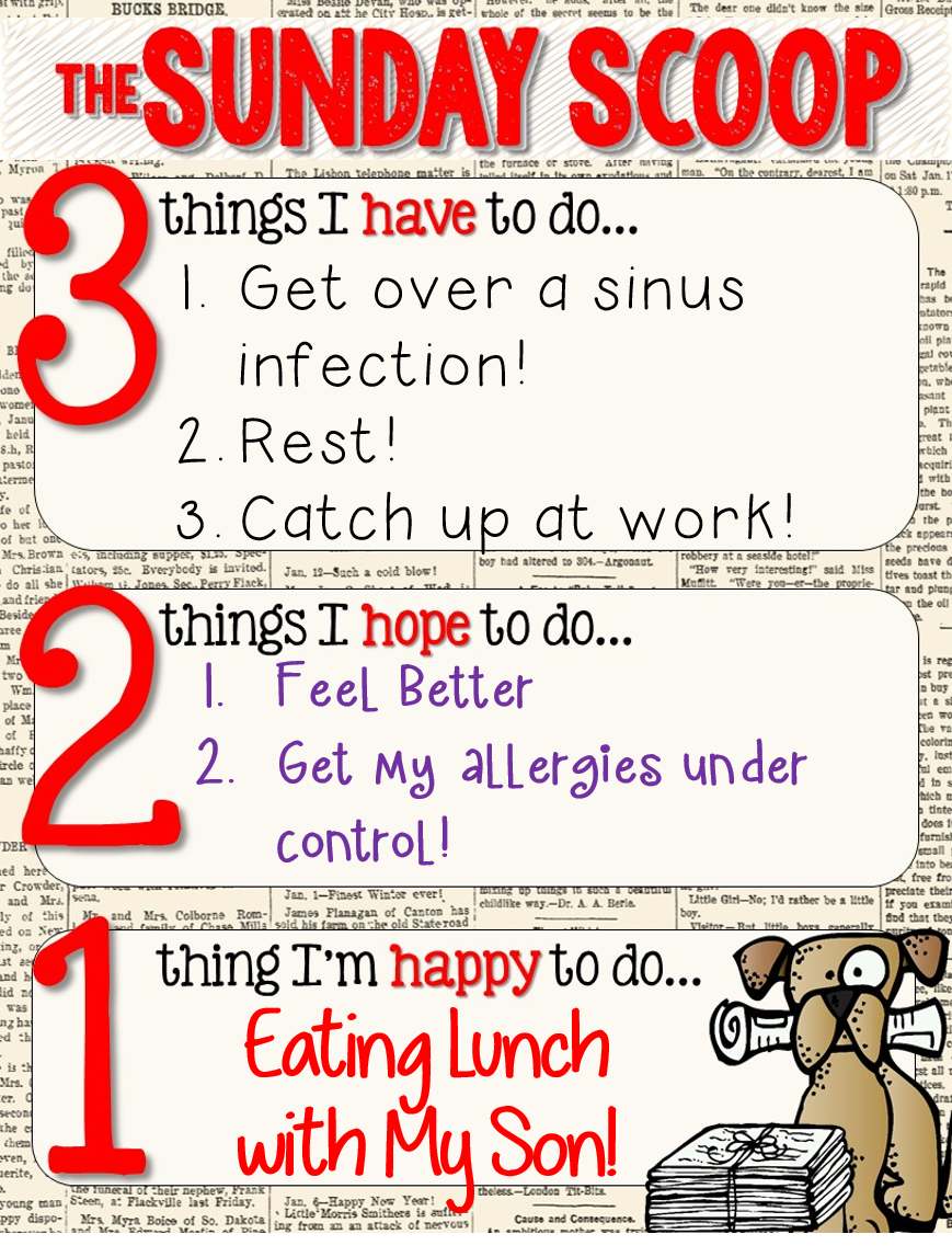 The Sunday Scoop is based on the popular 3-2-1 graphic organizers so many of us use with our students. Tell us three things you HAVE to do, two things you HOPE to do, and one thing you're HAPPY to do. If this is your first time linking up, check out all the details on our Sunday Scoop page, then link up below!