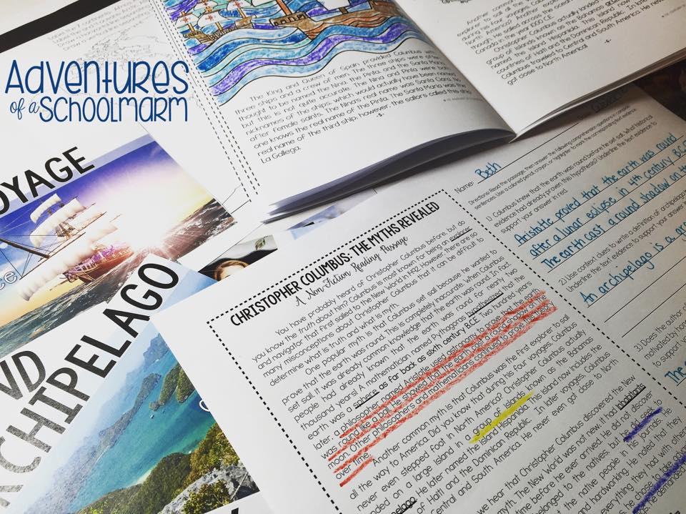 After reading a the picture book, we are going to use a bunch of activities from Beth's {Adventure of a Schoolmarm} amazing Columbus Day Unit. Beth literally thought of everything for this unit. She included a reader's theater play, non-fiction text passages with comprehension questions, KWL charts, full color vocabulary posters, and SO MUCH more. Here are some pics of her unit: